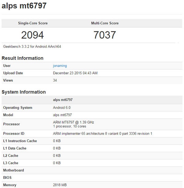 ساعاتی پیش نتایج بنچمارک دستگاهی با نام alps mt6797 در بنچمارک Geekbench منتشر شد که نشان می دهد تراشه ده هسته ای این دستگاه توانسته است در بخش آزمایش چند هسته ای به نتایج قابل توجهی دست پیدا کند. این دستگاه موفق شده است در این بخش در حدود 7000 امتیاز بدست بیاورد. اگرچه همچون دیگر تراشه های مشهور موجود در بازار به نظر می رسد که نسخه اولیه و آزمایشی این تراشه، عملکرد بهتری از نسخه های اصلی آن داشته باشد اما بازهم کسب امتیازی در حدود 7000 برای یک تراشه بسیار عالی است و می تواند نوید یک محصول قدرتمند را بدهد. از سویی دیگر باید توجه داشت که مقایسه بین این نتایج با نتایج بدست آمده از نسخه های آزمایشی تراشه هایی نظیر اسنپدراگون 820 و Exynos 8890، بازهم تراشه Helio X20 را در جایگاهی بالاتر قرار می دهد.