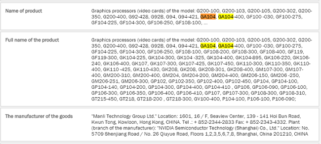 همچنن Manli وجود یک پردازنده گرافیکی پیش تر مشاهده نشده به نام GA104-400 را تایید کرده است که به نظر می رسد مبتنی بر ریزمعماری جدید Amper باشد.