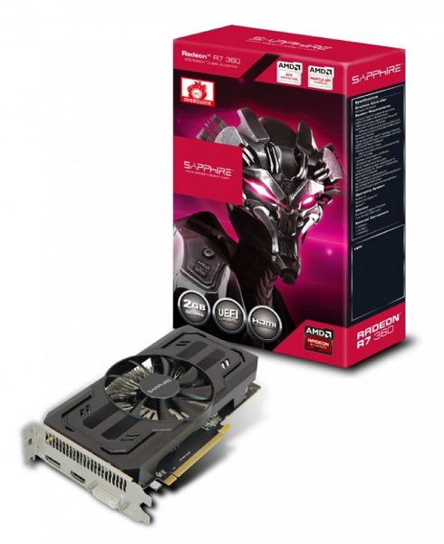 سافایر سه کارت Radeon R9 380 مبتنی بر پردازنده گرافیکی Antigua یا Tonga Pro پیشین ارائه کرده است. این تراشه نسبت به Hawaii، معماری بهتری با 1792 پردازنده جریانی، 112 واحد TMU و 32 واحد ROP دارد. فرکانس پردزانده گرافیکی 985 تا 980 مگاهرتز در مدلهای مختلف و فرکانس حافظه در مدل 2 گیگابایتی 5.5 گیگاهترز و در مدل 4 گیگابایتی 5.5 گیگاهرتز می باشد. رابط حافظه 256 بیتی و توان مصرفی کارت 225 وات است.