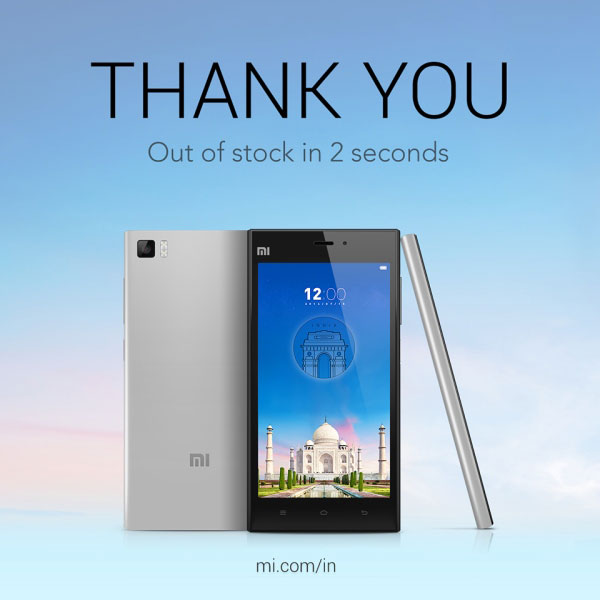 با فروش 15000 اسمارت فون Mi 3، شرکت تجارت الکترونیکی Flipkart، شاهد مبادله ای حدود 3.450.834 دلاری در 2 ثانیه بوده است و فقط این اعداد جدای فروش عادی و غیر اینترنتی بوده است.