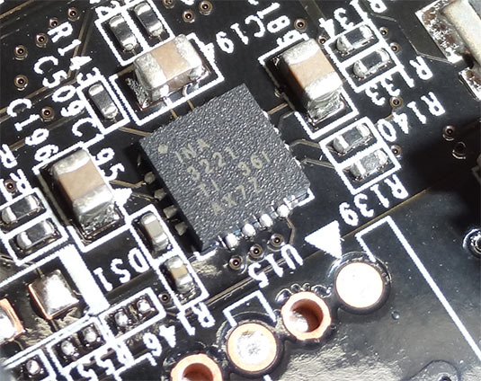 همچنین این کنترلر با استفاده از چیپ INA3221 ساخت کمپانی Texas Instruments با استفاده از رابط I2C قابلیت مانیتورینگ ولتاژ و جریان مصرفی بخش های نام برده را نیز برای این کارت گرافیک فراهم می کند.