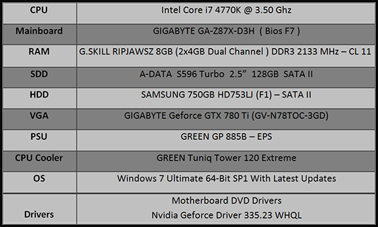 تمامی پارامترهای گرافیکی Game ها در این تست ها در حالت حداکثر مقادیر ممکن تنظیم شده اند و در نرم افزارهای 3DMARK تست ها در دو حالت Extreme و Performance صورت گرفته اند.
