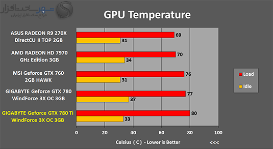نتایج تست های حرارتی حاکی از این است که کمپانی گیگابایت نویز کمتر این کارت گرافیک را نسبت به آستانه حداکثر حرارت GPU در اولویت بالاتری قرار داده. البته GK110 تحمل حرارت تا 95 درجه سانتی گراد را نیز دارد. نتایج ممتاز تست های نویز نیز به روشنی بیانگر این موضوع می باشند.