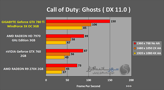 سری بازی های ندای وظیفه بدون شک یکی از محبوب ترین بازی های حال حاضر ژانر شوتر اول شخص محسوب می شوند. جدیدترین نسخه این بازی که با عنوان Call of Duty: Ghosts عرضه شده است این بار مبتنی بر DirectX 11 و موتورهای گرافیکی IW Engine و فیزیک Havok ساخته شده و از مدت ها تبلیغات فراوانی برای گرافیک جدید این بازی شده بود. ولی در عمل اکثر کاربران نسبت به حجم بسیار بالای بافت ها این بازی شکایت دارند به گونه ای که شاید 2GB حافظه Frame Buffer نیز برای اجرای این بازی در رزولوشن 1080p 4X MSAA کم به نظر می رسد !