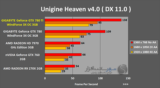 بنچ مارک Unigine Heaven v4.0 آخرین نسخه از این نرم افزار محسوب می شود که بر پایه موتور UNIGINE Engine یکی از بهترین و معتبرترین تست های مبتنی بر DirectX 11 محسوب می شود. محیط گرافیکی بنچ مارک دهکده ای جادویی را شبیه سازی می کند که در آن انواع و اقسام بافت ها مشاهده می شوند. از جمله ویزگی های گرافیکی این بنچ مارک می توان به hardware tessellation،global illumination و screen-space ambient occlusion اشاره کرد.