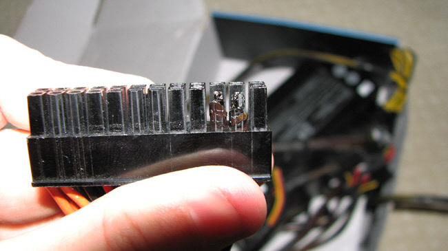 - در حین اسمبل سیستم توجه داشته باشید که حتماً کانکتورها چه از سمت پاور و چه از سمت قطعات بهصورت صحیح و کامل وارد سوکت مورد نظر شده باشد. تجربه نشان داده یکی از مهمترین عوامل سوختگی سوکت ها و کانکتورها عدم اتصال کامل و در نتیجه کاهش سطح تماس پینهای نری و مادگی کانکتورهاست. همان طور که اشاره شد این کاهش سطح تماس عامل اصلی افزایش امپدانس و در نتیجه بالا رفتن تصاعدی حرارت نقطه اتصال است.