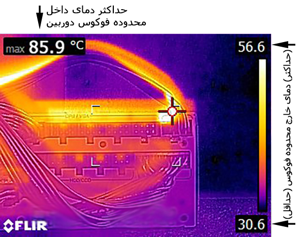 در تصاویر بالا نیز دمای همان دو پین نام برده را در ناحیه اتصال به کانکتور 24Pin مادربرد مشاهده میکنید. طبق تصویر، دمای ثبت شده در این بخش نیز مرز 80 درجه سانتیگراد را رد کرده است.