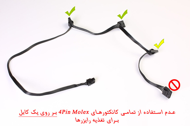 - تحت هیچ شرایطی از مبدلهای غیراستاندارد کانکتورهای Molex به PCIe و PCIe 6-Pin به PCIe 8-Pin استفاده نکنید
