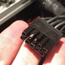یکی از شایعترین حالتهایی که در اکثر اوقات باعث آب شدن و یا سوختن کانکتورهای PCIe تعبیه شده بر روی پاور میشود استفاده از کابلهای دارای دو خروجی PCIe-8Pin جهت تغذیه دو کارت گرافیک پرمصرف که هر یک تنها دارای یک سوکت برق 8Pin است.