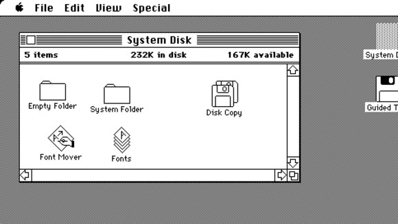در واقع ایده اولیه این کار متعلق به اپل نبود بلکه برپایه سیستم شرکت Xerox بود ، اما اپل اولین کمپانی بود که یک کامپیوتر را با رابط کاربری گرافیکی به نام Apple Lisa در سال 1983 تولید نمود .