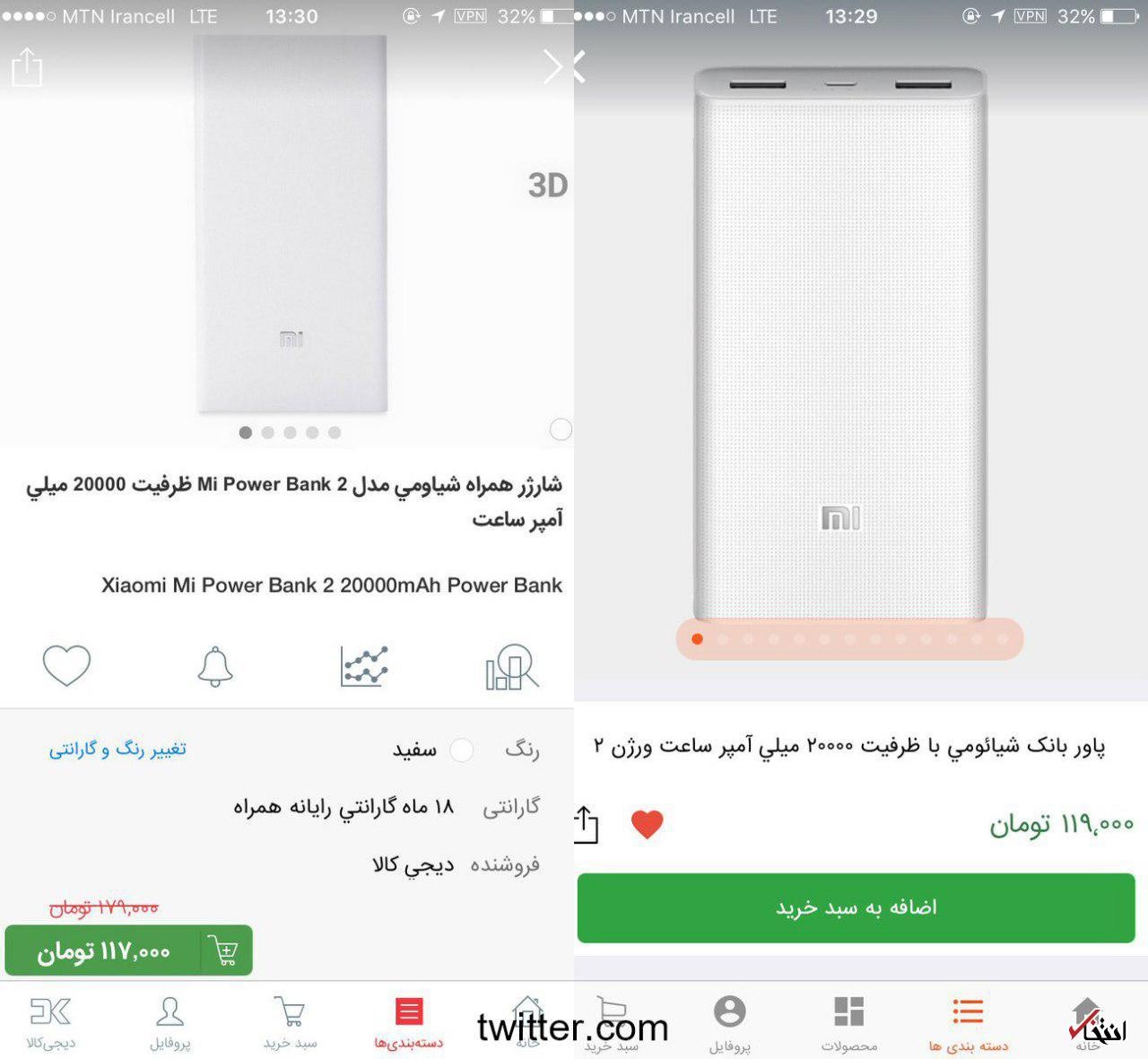 عرضه پاوربانک 119 هزار تومانی در حراجی به قیمت 179 هزار تومان که پس از تخفیف با قیمت 117 هزار تومان عرضه شد!