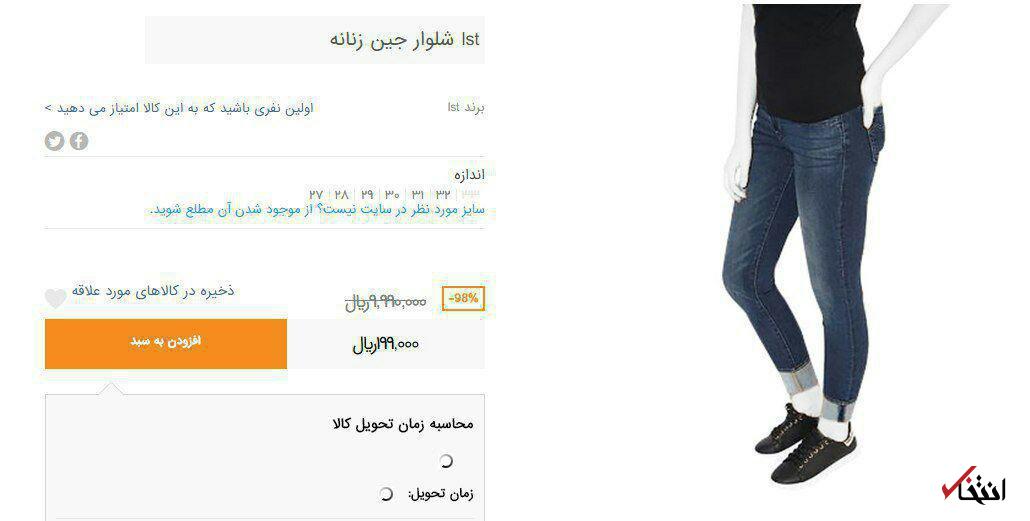 قیمت عجیب 999 هزار تومانی برای یک شلوار جین و عرضه آن به قیمت 19 هزار تومان با 98 درصد تخفیف!