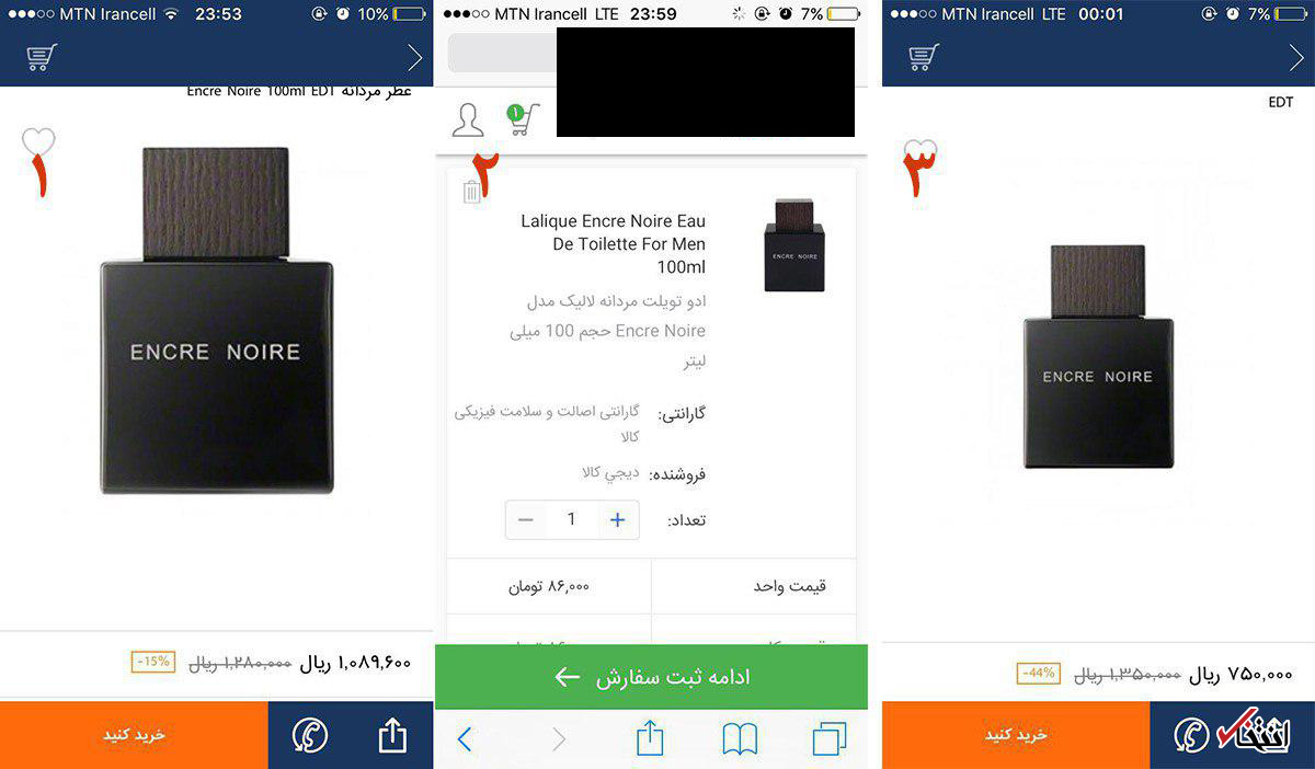 محصولی که پس از تخفیف در یک سایت 108 هزار تومان قیمت خورد، اما از آنجا که سایت رقیب 86 هزار تومان روی آن قیمت گذاشته بود، سایت اولیه قیمت خود را به 135 هزار تومان افزایش داد و پس از تخفیف آن را 75 هزار تومان ارائه داد!