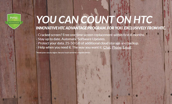 اسمارت فون HTC One M8 ویندوز فونی از برنامه HTC Advantage نیز برخوردار می باشد. از همه مهمتر شما را قادر به تعویض صفحه نمایش شکسته بدون پرداخت هیچ پولی است، قطعاً باید شکر گذار چنین سرویس عالی باید بود زیرا تعویض صفحه نمایش خرج بسیار زیادی دارد. علاوه بر این قول آپدیت نرم افزار گوشی و 15 گیگابایت فضای Cloud مجانی داده شده است.