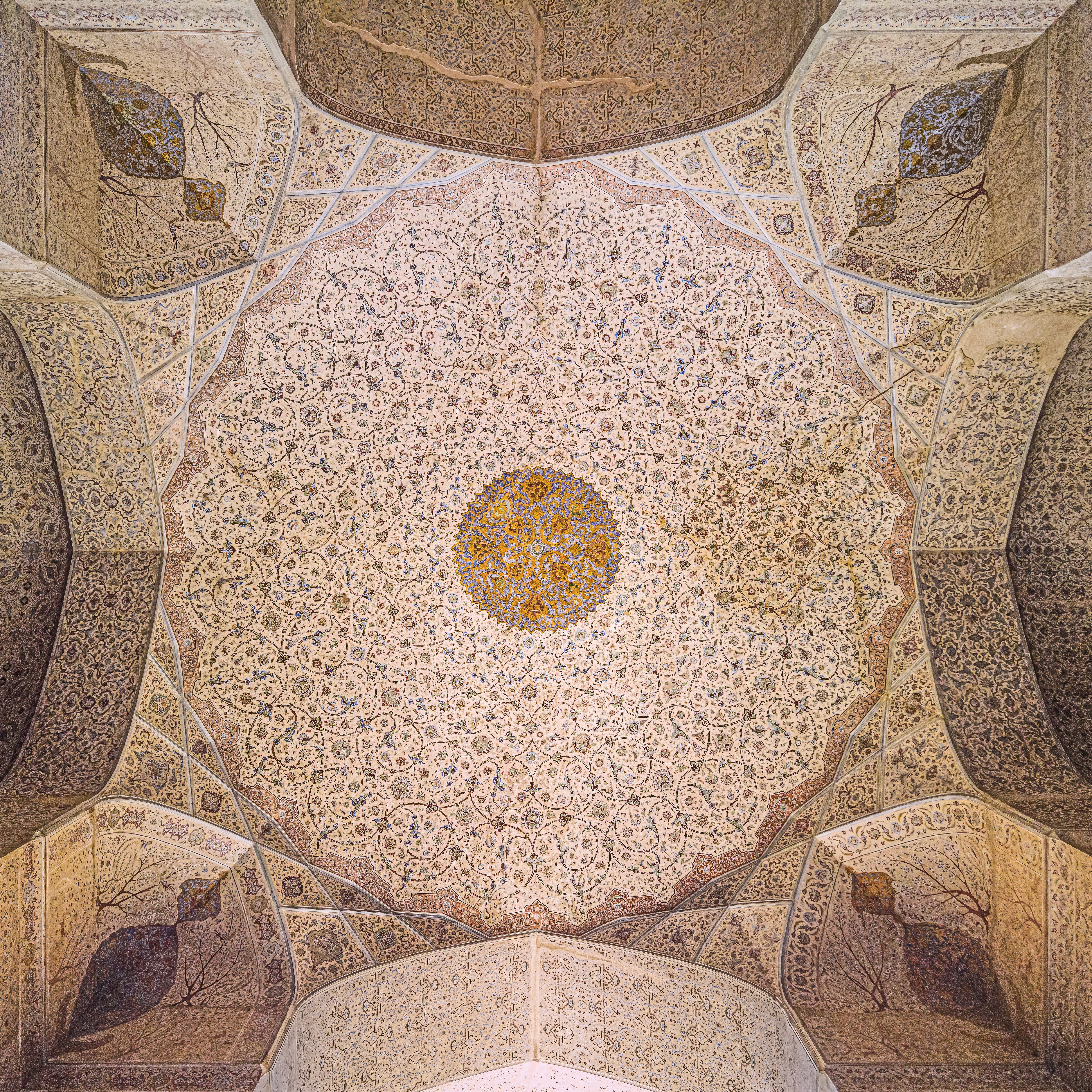 در این تصویر ما عکس را با فرمت خام گرفتیم تا دست بازتری در ادیت داشته باشیم. هر چند بهتر بود که دو عکس گرفته شده و با هم ترکیب شوند تا نیازی به استفاده از تکنیکهای Noise Reduction برای بخشهای تاریک تصویر نباشد، منتهی ما به دلیل محدودیتهای میراث فرهنگی به تنها یک عکس بسنده کردیم و پس از آن سه نسخه از تصویر را با نوردهیهای مختلف و سطح نویز متفاوت برای کنارههایی که نور نخورده و تاریکترند، کنارهی سمت آفتاب که به شدت پرنور شده است و سقف با نوردهی متوسط، ادیت کردیم .