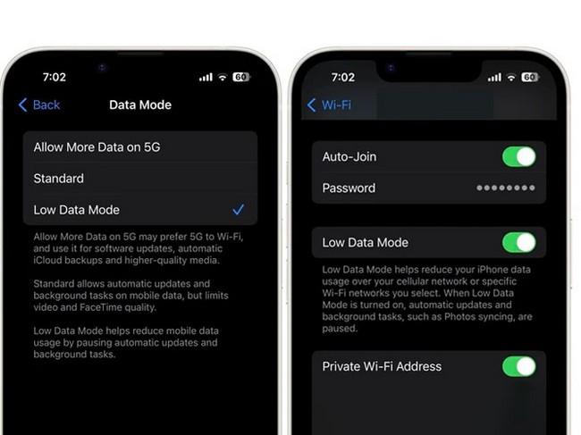 - بخش Data Mode را لمس و Low Data Mode را انتخاب کنید.