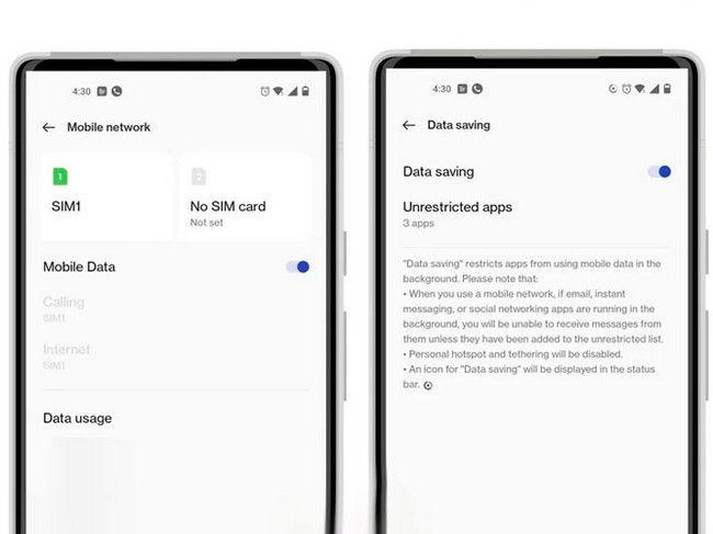 - قابلیت صرفهجویی در مصرف اینترنت را با لمس گزینهای با نام Data Saving یا Data Saver باز کنید.