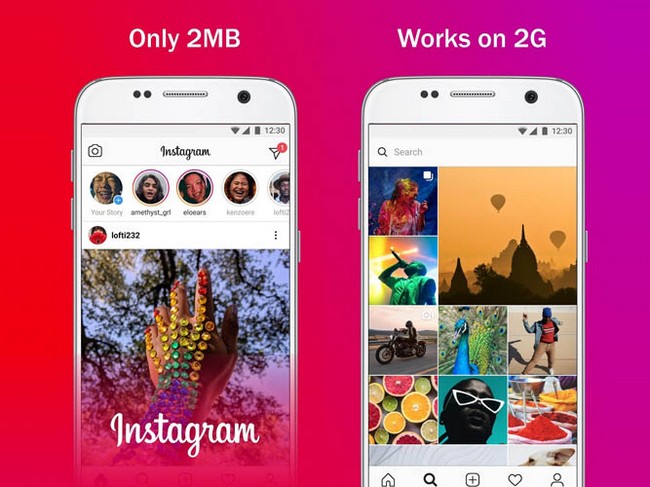اینستاگرام نسخهای سبکتر از اپلیکیشن خود را بهنام Instagram Liteعرضه کرده که مصرف اینترنت کمتری دارد. اگرچه این برنامه برخی از قابلیتهای نسخه اصلی را ندارد، سرعت اجرای آن بالاتر بوده و منابع کمتری مصرف میکند.