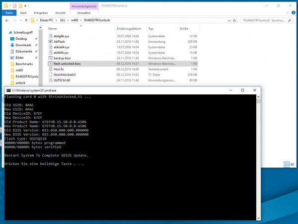 فرآیند آنلاک کردن کارت های RX 460 بسیار ساده است. ضمن پشتیبان گرفتن از نسخه فعلی بایوس کارت، تنها باید بایوس ماد شده اختصاصی همان مدل را فلش زد، تمام است. البته آخرین درایور منتشر شده از سوی AMD با کارت های مجهز به بایوس دستکاری شده قابل استفاده نیست و باید از یک نسخه قدیمی تر استفاده کرد.