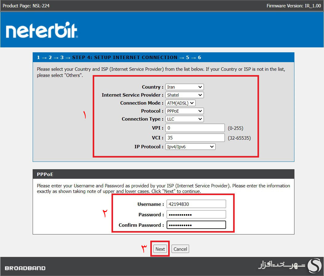 نحوه تنظیمات مودم Neterbit از طریق Internet Setup