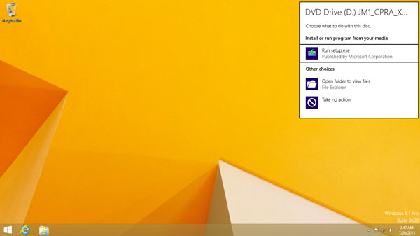 2. اجرای نصب از داخل خود ویندوز 8 . این کار را می توان با دیسک DVD و یا فلش درایو حاوی فایل نصب انجام داد.