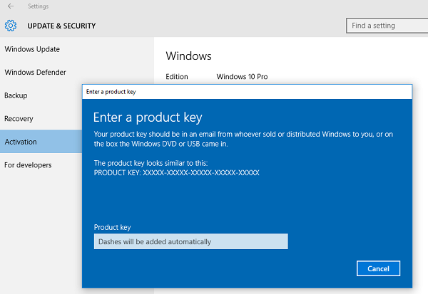 با این کار نسخه Home ویندوز 10 به Pro ارتقا مییابد اما قادر به استفاده از کلید فعال سازی نسخه Home برای فعال سازی Pro نخواهید بود. از این رو پس از ارتقا، شما 30 روز مهلت دارید تا ویندوز را به هر طریقی، فعال کنید.