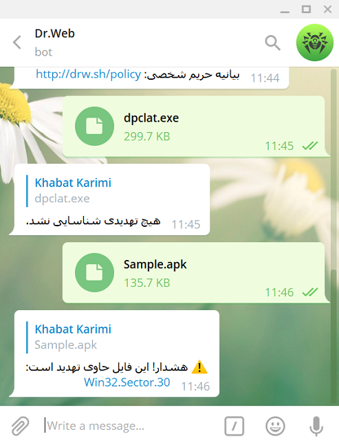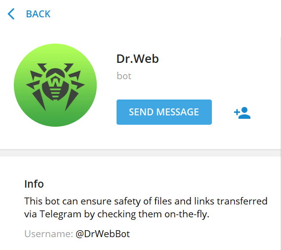 برای دسترسی به این بات کلیک کنید یا @DrWebBot را تلگرام فرا بخوانید.