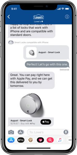 Business Chat به شما اجازه میدهد تا در برنامهی Messages با نمایندگان شرکتها و تنظیم کنندگان ملاقاتهای کاری صحبت کرده و یا با Apple pay خرید کنید. اطلاعات تماس شما در Business Chat مشخص نخواهد بود و شما میتوانید در هر زمانی به مکالمهی خود پایان دهید.