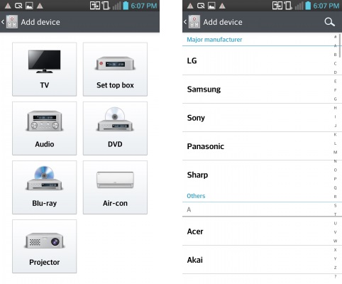 اما مزیت QRemote پشتیبانی عالی و متنوع از انواع برند ها و کد ها است که شما را راضی می کند ، شما می توانید به عنوان مثال بین کنترل مخصوص تلویزین های سامسونگ و کولرهای گازی پاناسونیک سوییچ کنید و یا سینمای خانگی سونی خود را در اختیار داشته باشید .