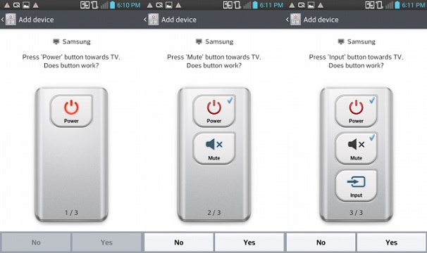 - حال وقت بررسی عملکرد ارتباطی است ، در این صفحه دکمه پاور را لمس کنید و اگر توانست ارتباط برقرار کند گزینه Yes را انتخاب کنید .