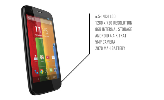 در سال 2013 شاهد اتفاقات جالبتری بودیم. موتورولا به تازگی، محصول جدیدش Moto G را معرفی کرده بود و هنگامی که در بازار آمریکا بفروش گذاشته شد تنها 179 دلار قیمت داشت. موتورولا مصمم بود صرفا بجای تغییر دادن شکل و شمایل ظاهری محصولات خود، تغییرات اساسی در طرح هایش بوجود آورد. اسمارت فون Moto G مجهز به یک پردازنده مدرن بود و از یک صفحه نمایش 4.5 اینچی LCD با تراکم 720 پیکسل بهره میبرد و مهمتر از همه، بهمراه یک سیستم عامل اندروید کاملا بروز که تا آن موقع در بین گوشی های دیگر با قیمت مشابه، دیده نشده بود روانه بازار شد. اغلب تولید کنندگان این سری گوشی ها، همیشه علاقمند بودند محصولات رده پایین خود را در بازار کشور های در حال توسعه به فروش برسانند ولی Moto G آنقدر با کیفیت بود که توانست حتی در ایالات متحده، عرضه و به فروش برسد. این گوشی، یقینا به نسبت قیمت ارزانش، گوشی ارزشمندی بود.