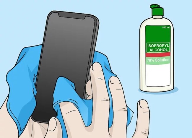 سپس تمام سطوح گوشی یا تبلت خود را با استفاده از دستمال آغشته به الکل 70 درصد یا ضدعفونی کنندههای بهداشتی پاک کنید. برای اینکار کمی مواد ضد عفونیکننده حاوی الکل را روی یک پارچه میکروفیبر تمیز ریخته و صفحه و بدنه دستگاه خود را به آرامی پاک کنید اما مراقب باشید که رطوبت وارد درگاههای گوشی یا تبلت نشود.