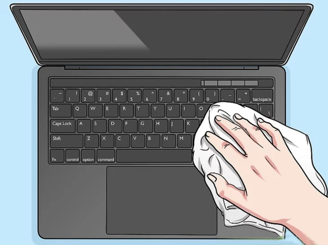 صفحه کلید دستگاه را با یک دستمال آغشته به محلول ضد عفونی مانند الکل ایزوپروپیل به خوبی پاک کنید همچنین میتوانید یک پارچه میکروفیبر را با مقدار کمی الکل مرطوب کرده و از آن استفاده کنید. فقط مراقب باشید پارچه را بیش از حد مرطوب نکنید و اجازه ندهید مایع ضدعفونی به داخل کلیدهای کیبورد شما نفوذ کند.