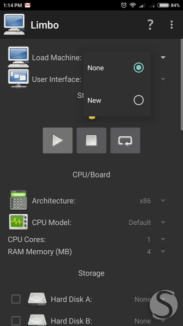 اولین گزینه ی قابل تغییر در این اپلیکیشن، Load Machine است. از منوی کشویی باز شده آن گزینه ی New را انتخاب کنید. در قسمت بعدی یعنی User Interface، گزینه ی SDL را انتخاب نمایید.