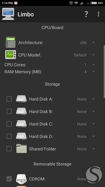 کمی پایین تر در بخش Storage شما امکان تخصیص و تعریف بخشی از فضای حافظه داخلی خود را به عنوان هارد دیسک دارید. این ویژگی بیشتر برای استفاده در نسخه های خام ویندوز مناسب است. می توانید تا 4 هارد دیسک با ظرفیت های مختلف و یک فولدر به اشتراک گذاشته شده برای رد و بدل کردن اطلاعات میان ویندوز شبیه سازی شده و سیستم عامل اندروید بسازید.