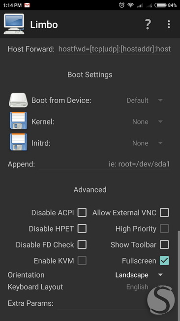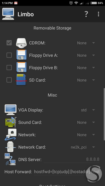 در بخش Misc نیز گزینه ی VGA Display را به std تغییر داده و به مابقی بخش ها کاری نداشته باشید. در بخش انتهایی Advanced نیز تیک گزینه ی Full Screen را بزنید. حال به ابتدای صفحه برگشته و دکمه Play را بزنید تا عملیات آماده سازی نسخه ایمیج شما شروع شود.