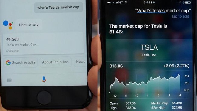 دلیل: پاسخ سیری، به ارزش ۵۱.۶ میلیارد دلاری شرکت تسلا نزدیکتر بود اما از نقطه نظر فنی، هر دو دستیار دیجیتالی، پاسخهای نادرستی را ارائه کردند. گوگل اسیستنت معمولا اطلاعات جانبی دیگری را هم در موارد اینچینی ارائه میدهد. این در حالی است که سیری نمودار تغییرات ارزش سهام تسلا را پیش روی ما قرارداد.