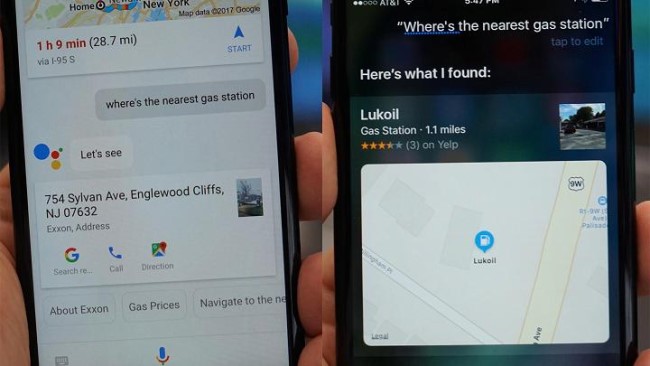 دلیل: گوگل اسیستنت و سیری هر دو به زعم خود نزدیکترین پمپ بنزین را به ما نشان دادند اما موقعیت مکانی پمپ بنزینی که توسط گوگل اعلام شد نزدیک تر بود و تنها ۰.۴ مایل از ما فاصله داشت. علاوه بر این، گوگل اسیستنت این امکان را فراهم کرد تا در ادامه اطلاعات بیشتری را درباره موضوع جستجو به دست آوریم. به عنوان مثال، این دستیار دیجیتالی امکان آنرا فراهم کرد تا قیمت بنزین را جستجو کنیم. حتی این امکان را فراهم کرد تا اطلاعات بیشتری را در خصوص شرکت Exxon به عنوان تامین کننده بنزین دریافت کنیم و شماره تماس با آن را در اختیار داشته باشیم.