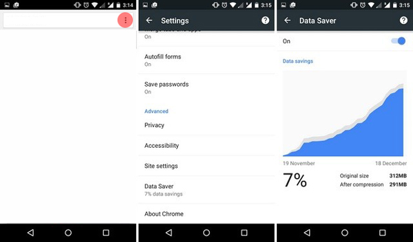 برای فعال نمودن آن، وارد برنامه گوگل کروم شده و با لمس آیکون «سه نقطه»، وارد بخش تنظیمات شوید. در صفحه جدید، به دنبال گزینهای به نام Data Saver باشید و با انتخاب آن، مطمئن شوید که این قابلیت فعال است.