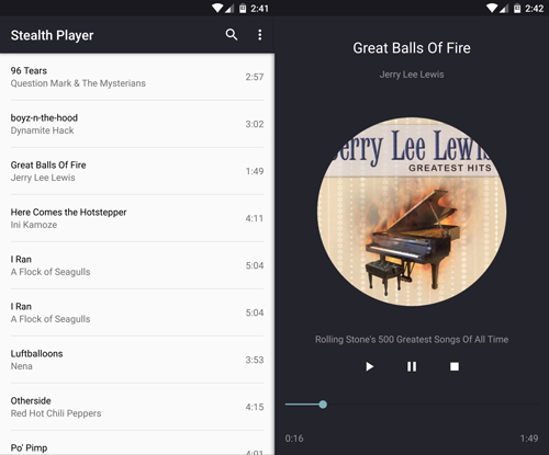 البته در برنامه Stealth Audio Player خبری از لیست پخش، امکان اضافه کردن آهنگها به لیست آهنگهای مورد علاقه و ... وجود ندارد و بیشتر، در واقع با یک پخشکننده موسیقی ساده طرف هستید که با رعایت زبان طراحی متریال گوگل، عملکرد صوتی بسیار خوبی را به واسطه پخش صدا با استفاده از بلندگوی اصلی برای شما به ارمغان میآورد. البته این برنامه شاید در آینده، تکمیلتر شود؛ با اینحال، فعلاً گزینه کاملاً مناسبی برای جایگزین نمودن آن با دیگر برنامههای پخش موسیقی نیست!