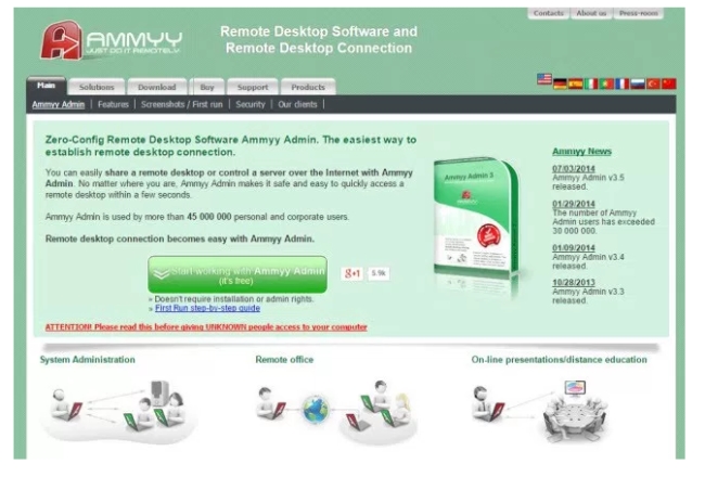 AMMYY Adminn هم راهکاری برای اجرای ریموت دسکتاپ ویژه کاربران عادی و شرکتی به حساب میآید. این نرمافزار، علیرغم کارایی بالا، کمتر از یک مگابایت حجم دارد. با استفاده از این راهکار میتوانید از قابلیتهایی نظیر انتقال فایل، گفتگوی زنده و البته دسترسی از راه دور به سیستمهای دیگر بهره ببرید.