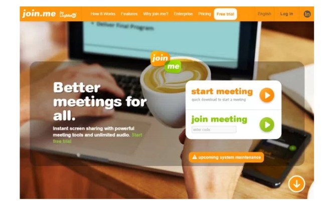 نرمافزار Join.me که توسط LogMeIn توسعه یافته سرویس ریموت دسکتاپ سطح بالایی است که به کاربران شرکتی و تجاری امکان برگزاری جلسات از راه دور را با کارکنان و همکارانشان در سراسر جهان میدهد. این ابزار به اشتراکگذاری سریع صفحهنمایش، راهکار ویژهای را برای برگزاری جلسات فراهم کرده و نسخه پولی این نرمافزار حتی امکان حضور ۲۵۰ نفر را در جلسات فراهم می کند. Join.me یکی از پرکاربردترین ابزارهایی است که توسط صدها دانشگاه و البته شرکتهای Fortune 500 استفاده میشود.