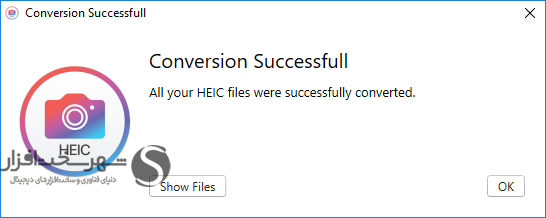 در نهایت پیغام تأیید نمایش داده میشود، میتوانید برای نمایش فایلهای تبدیل شده بر روی دکمه "Show Files" کلیک کنید.