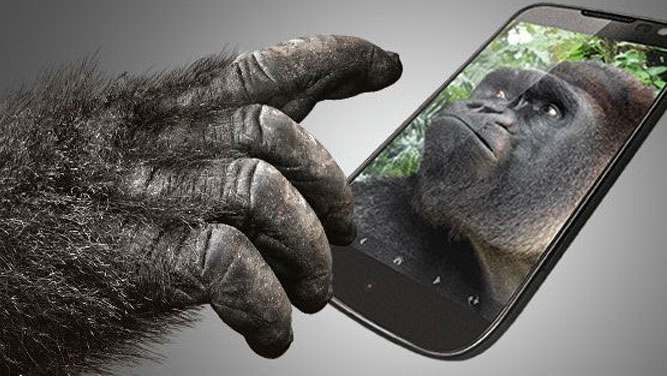گوریلا گلس (Gorilla Glass) نام فناوری است که از سوی شرکت آمریکایی Corning ارائه میشود. شیشههای Gorilla Glass پس از تولید درون یک وان حاوی پتاسیم قلیایی ذوب شده قرار میگیرند که دمای آن به 400 درجه سانتیگراد میرسد. با این کار تبادل یونی اتفاق می افتد و یونهای کوچک سدیم موجود در شیشه جای خود را به یونهای بزرگتر پتاسیم میدهند و از آنجایی که یونهای سدیم حجم بیشتری را اشغال میکنند، این تغییر باعث استحکام بیشتر شیشه در برابر خرد شدگی، ضربه و خراش میشود.