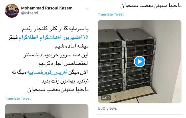 حال محمد رسول کاظمی مدیر پیام رسان بومی آی گپ در توییتی از ارایه مهلت مجددی به ۲ نسخه فارسی تلگرام خبر داده است. وی با انتشار تصاویری از تجهیزات سرور خریداری شده به ارایه مهلت مجدد انتقاد کرده و توضیح داده که پیام رسان بومی با گذراندن چالش هایی از جمله قانع کردن سرمایهگذار در حال آماده شدن برای ۱۵ شهریور بوده که هاتگرام و طلگرام فیلتر می شوند و تقاضا برای پیام رسان جایگزین بالا می رود.