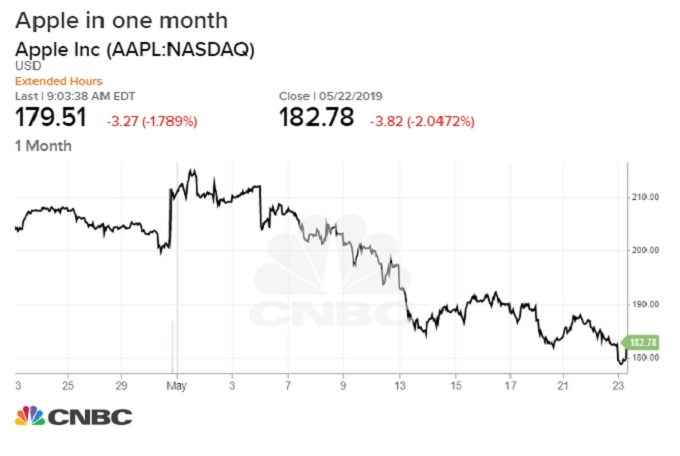 از سال گذشته میلادی جنگ اقتصادی میان آمریکا و دولت چین به اوج خود رسیده است و این موضوع تاثیر مستقیم بر روی روند فروش شرکتهای بزرگ فناوری این دو کشور داشته است، اما به نظر میرسد که در این بین اپل بیش از همه با خسارتهای مالی مواجه شده است. بر اساس گزارشهای منتشر شده در ماههای اخیر، محبوبیت محصولات ساخت اپل از جمله گوشیهای آیفون در کشور چین به طور جدی رو به کاهش است. در ابتدا تحلیلگران دلیل اصلی این موضوع را افت ارزش پول ملی چین نسبت به دلار میدانستند و معتقد بودند که این موضوع باعث کاهش قدرت خرید مردم چین شده است، در همین راستا اپل تخفیفهای مختلفی را برای افزایش فروش محصولات خود در چین در نظر گرفت اما تفاوت چندان چشمگیری حاصل نشد.