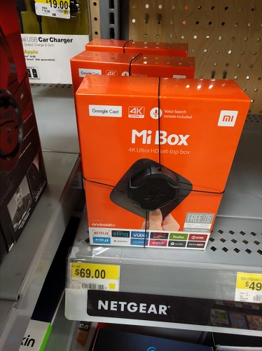 طبق تصویری که در حساب توییتر George Garrett منتشر شده، حداقل سه دستگاه Mi Box روی قفسهی والمارت دیده میشود. در این پست گفته نشده که این تصویر از کدام شعبهی والمارت گرفته شده است.