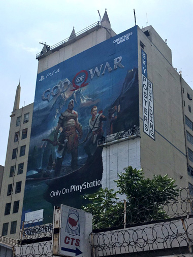 در تصویر تبلیغاتی که از بازی God of War در LA نصب شده، بخشی از بنر تبلیغاتی هنوز آماده نیست و همین موضوع باعث شده تا بسیاری گمان نمایند که این بخش مربوط به زمان عرضه بازی جدید سنتا مونیکا است. شاید این بخش زمانی تکمیل شود که سونی در نمایشگاه E3 به زمان عرضه یکی از محبوبترین انحصاریهای کنسول پلیاستیشن 4 اشاره نماید.