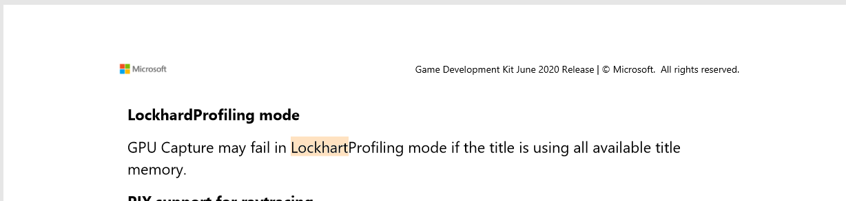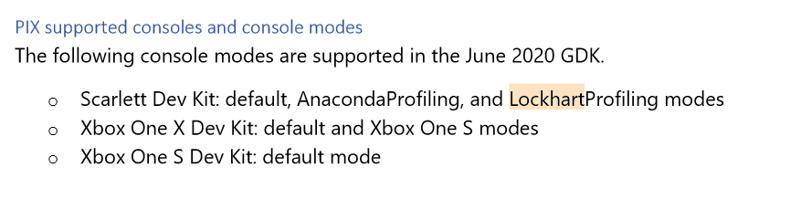 بر اساس اطلاعات ثبت شده توسط مایکروسافت، اگر بازی مورد نظر از تمام حافظه گرافیکی موجود استفاده کند، این امکان وجود دارد که حالت گرافیکی LockhartProfiling با مشکل مواجه شود. شایعههای مربوط به نسخههای مختلف نسل نهم کنسول ایکس باکس در اوایل سال 2018 هم وجود داشتند. تحلیلگران در آن زمان معتقد بودند که مایکروسافت نسل جدید کنسول گیمینگ خود را در دو نسخه با اسم رمز Anaconda و Lockhart عرضه خواهد کرد.
