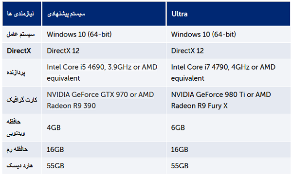البته نباید خیلی هم خوشحال بود، چراکه هنوز سیستم مورد نیاز این بازی رده بالا است، اما نسبت به گذشته، تامین آن امکان پذیرتر خواهد بود. توسعه دهنده این بازی افزون بر تقلیل سیستم پیشنهادی، سیستم ULTRA، برای اجرای بازی با بالاترین سطح از تنظیمات را اضافه کرده است. اگر قصد بازی کردن این عنوان دیدنی را دارید، پیشنهاد میشود نگاهی به جدول سیستم مورد نیاز آن بیاندازید.